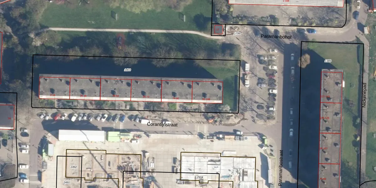 Het perceel waarop Corantijnstraat 86 staat heeft een oppervlakte van 3081 m². Dit is een zeer groot perceel. De perceeloppervlakte wordt geregistreerd door het Kadaster. Gedetailleerde informatie over de maten van dit perceel kunt u vinden in het rapport Kadastrale kaart met maatvoering van Corantijnstraat 86.