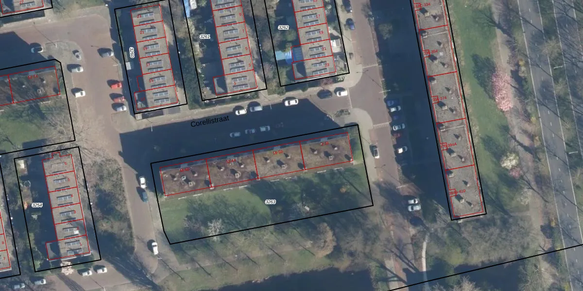 Corellistraat 18 is gelegen op kadastraal perceel LDN01O3263. Deze kadastrale aanduiding is uniek en wordt gebruikt door het Kadaster om eigendomsrechten en andere zakelijke rechten vast te leggen. Het perceel maakt onderdeel uit van de kadastrale gemeente Leiden.