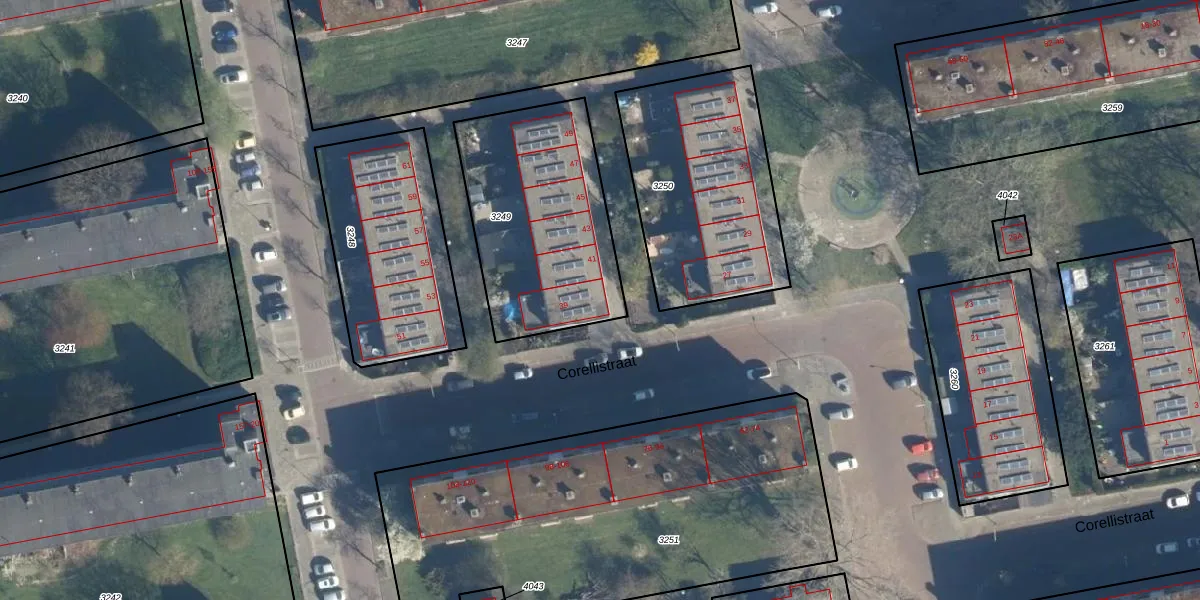 Corellistraat 39 is gelegen op kadastraal perceel LDN01O3249. Deze kadastrale aanduiding is uniek en wordt gebruikt door het Kadaster om eigendomsrechten en andere zakelijke rechten vast te leggen. Het perceel maakt onderdeel uit van de kadastrale gemeente Leiden.