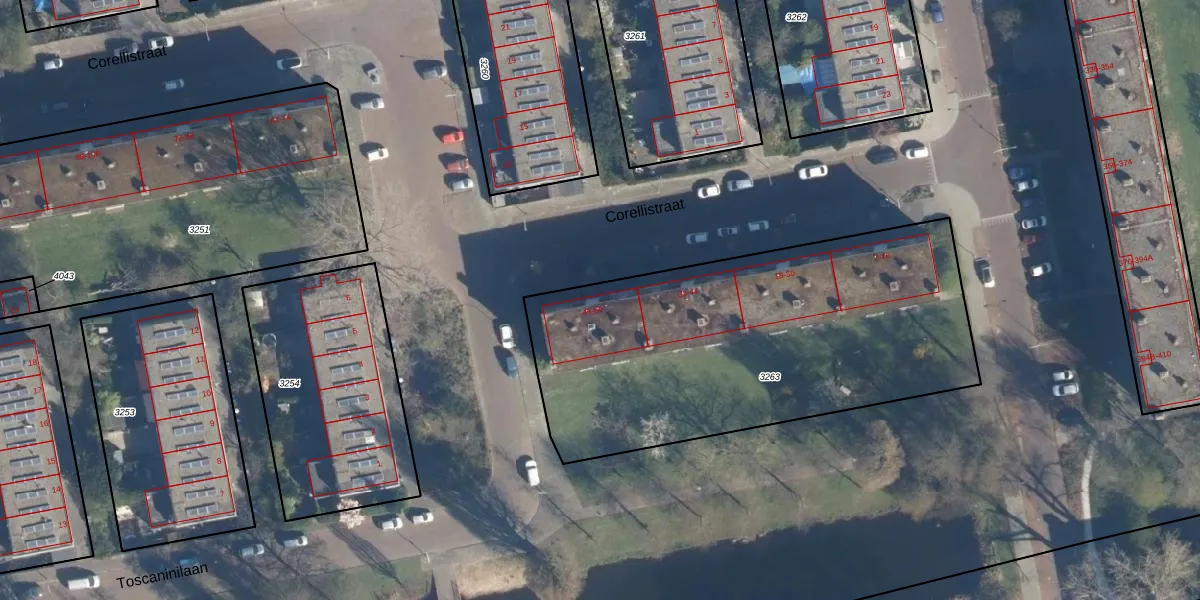 Corellistraat 48 is gelegen op kadastraal perceel LDN01O3263. Deze kadastrale aanduiding is uniek en wordt gebruikt door het Kadaster om eigendomsrechten en andere zakelijke rechten vast te leggen. Het perceel maakt onderdeel uit van de kadastrale gemeente Leiden.