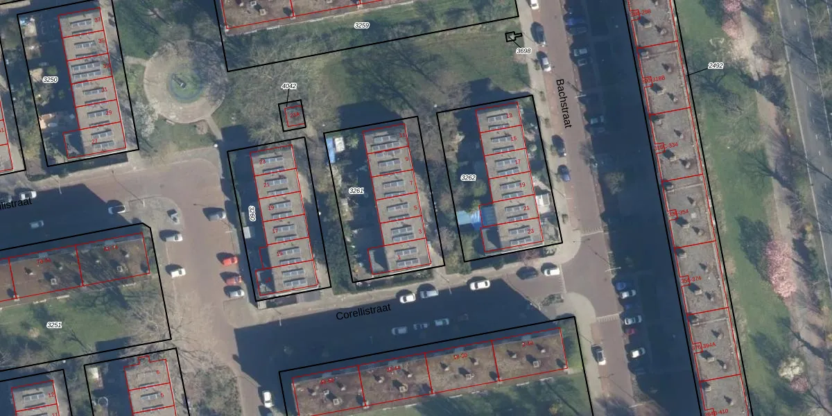 Corellistraat 5 is gelegen op kadastraal perceel LDN01O3261. Deze kadastrale aanduiding is uniek en wordt gebruikt door het Kadaster om eigendomsrechten en andere zakelijke rechten vast te leggen. Het perceel maakt onderdeel uit van de kadastrale gemeente Leiden.