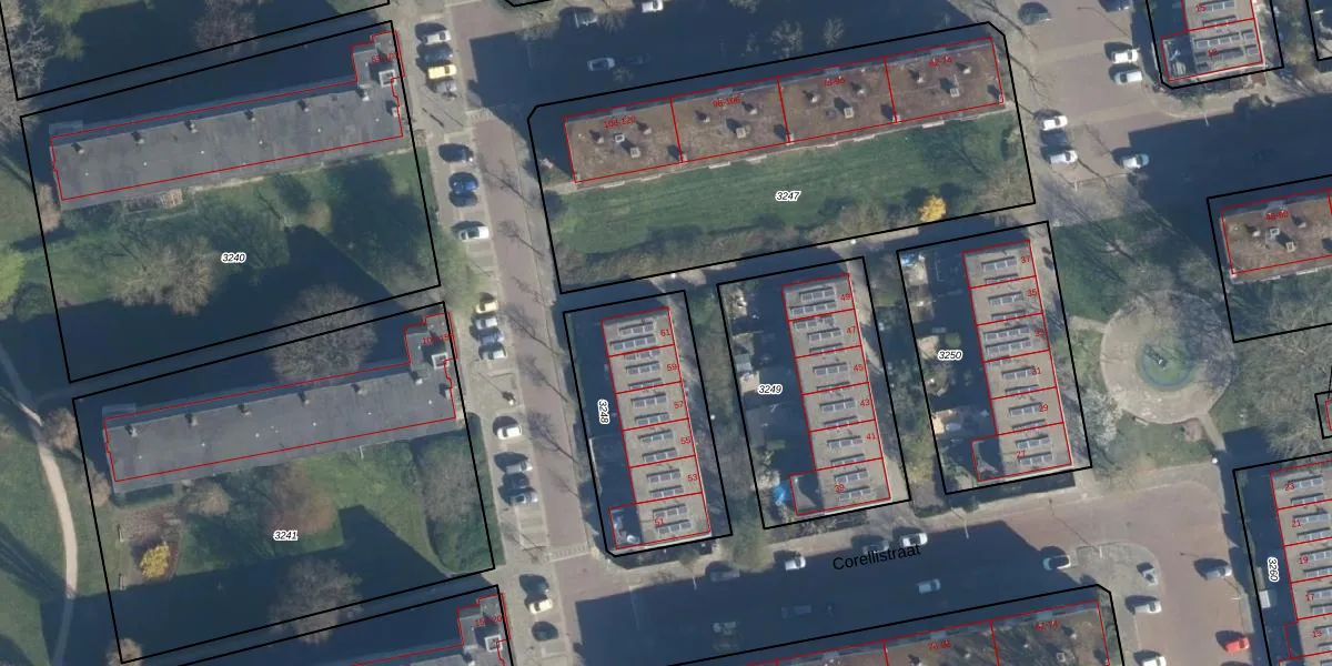Corellistraat 61 is gelegen op kadastraal perceel LDN01O3248. Deze kadastrale aanduiding is uniek en wordt gebruikt door het Kadaster om eigendomsrechten en andere zakelijke rechten vast te leggen. Het perceel maakt onderdeel uit van de kadastrale gemeente Leiden.