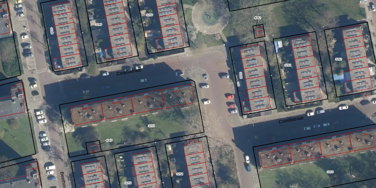 Het perceel waarop Corellistraat 66 staat heeft een oppervlakte van 2040 m². Dit is een zeer groot perceel. De perceeloppervlakte wordt geregistreerd door het Kadaster. Gedetailleerde informatie over de maten van dit perceel kunt u vinden in het rapport Kadastrale kaart met maatvoering van Corellistraat 66.
