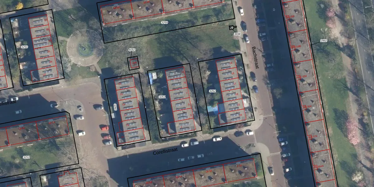 Corellistraat 7 is gelegen op kadastraal perceel LDN01O3261. Deze kadastrale aanduiding is uniek en wordt gebruikt door het Kadaster om eigendomsrechten en andere zakelijke rechten vast te leggen. Het perceel maakt onderdeel uit van de kadastrale gemeente Leiden.