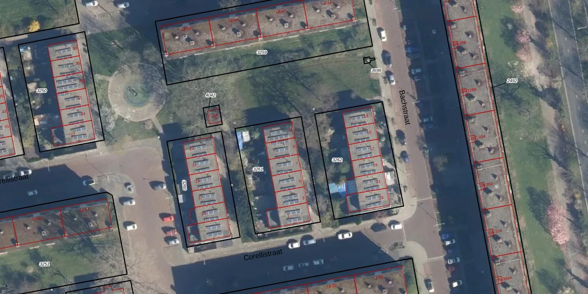 Corellistraat 9 is gelegen op kadastraal perceel LDN01O3261. Deze kadastrale aanduiding is uniek en wordt gebruikt door het Kadaster om eigendomsrechten en andere zakelijke rechten vast te leggen. Het perceel maakt onderdeel uit van de kadastrale gemeente Leiden.