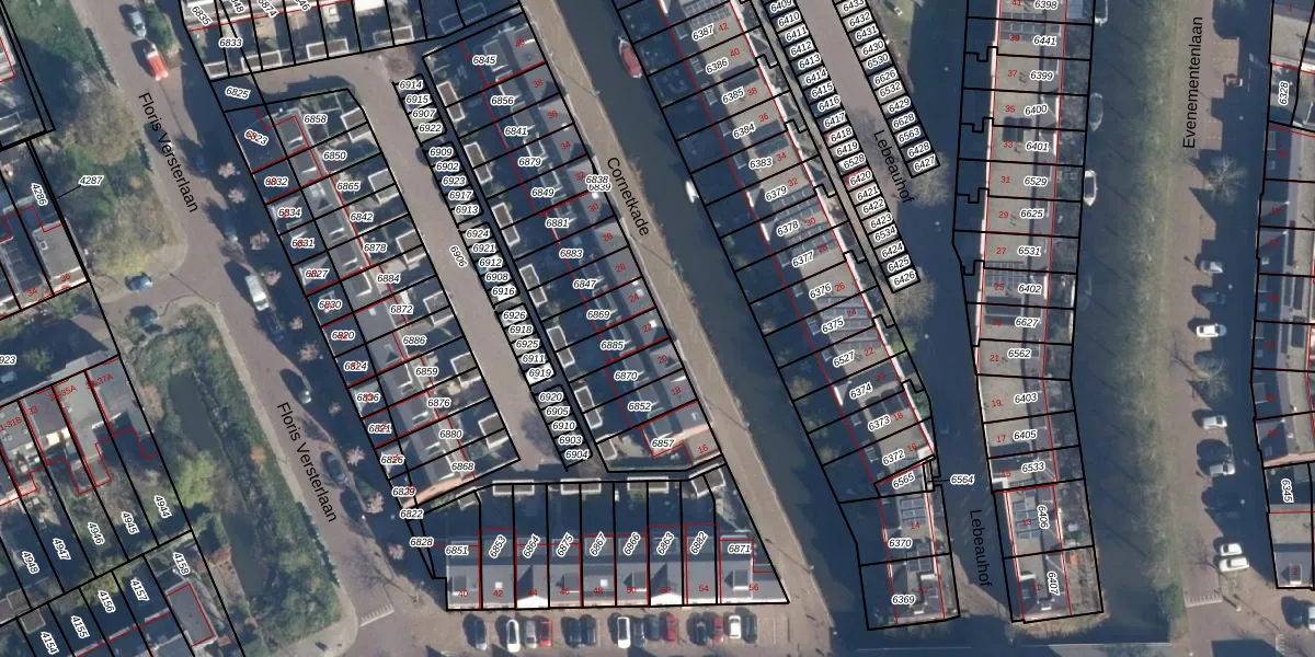 Gebruik de zoekbalk of klik op een perceel voor informatie over de adressen binnen dit perceel.