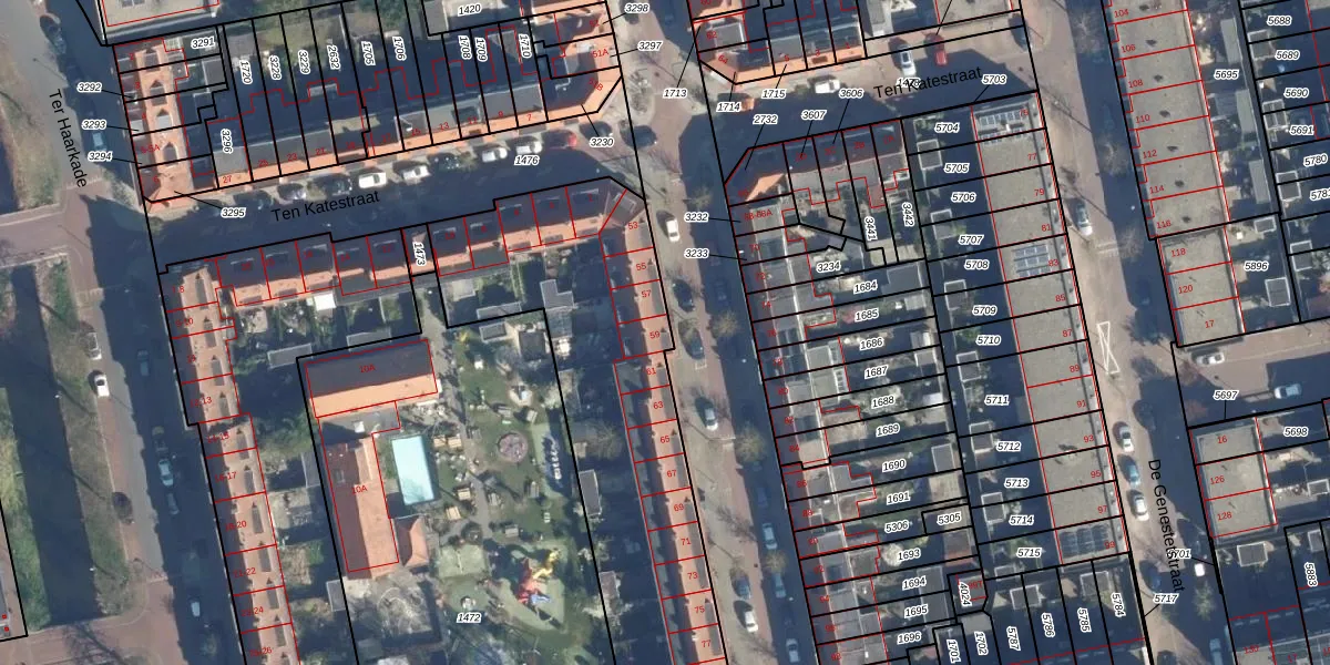 Het adres ligt op het perceel LDN01-O-1474, dat zich in de kadastrale gemeente Leiden bevindt. De gemiddelde perceeloppervlakte in de kadastrale gemeente Leiden is 703,94 m². Dit perceel is met zijn 4800 m² dus groter dan gemiddeld. Het grootste perceel in de kadastrale gemeente is 51,8 ha. Het kleinste perceel heeft een oppervlakte van 0 m². Op het perceel zijn 71 adressen aanwezig. De laatste wijziging in het de Basisregistratie Kadaster (BRK) was op 05-08-2003.