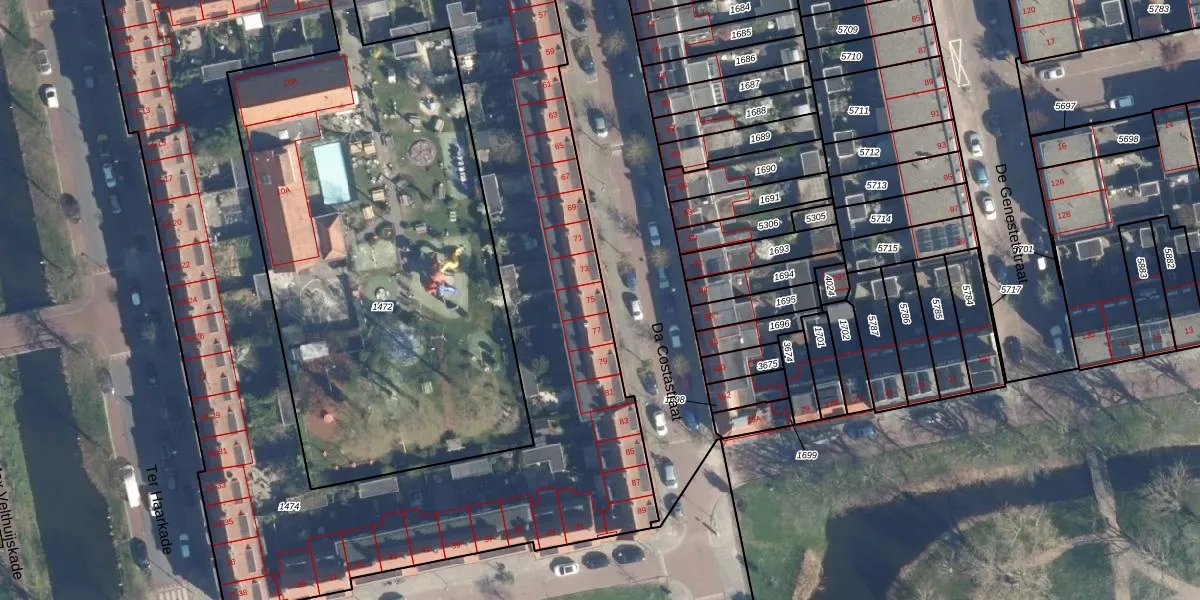 Da Costastraat 75 is gelegen op kadastraal perceel LDN01O1474. Deze kadastrale aanduiding is uniek en wordt gebruikt door het Kadaster om eigendomsrechten en andere zakelijke rechten vast te leggen. Het perceel maakt onderdeel uit van de kadastrale gemeente Leiden.