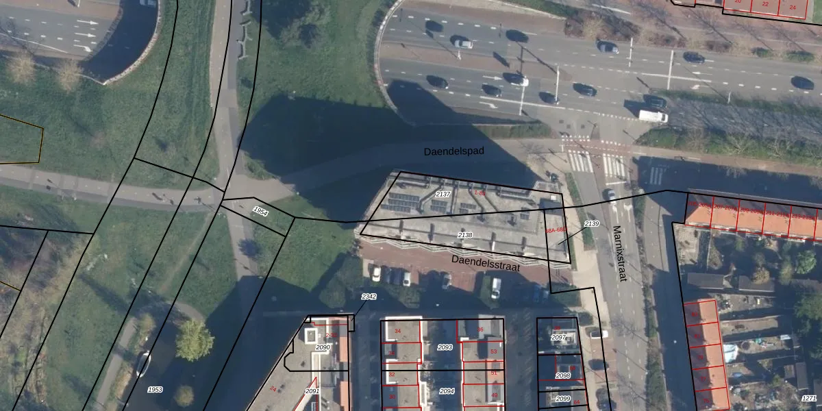 Daendelspad 25 is gelegen op kadastraal perceel LDN01N2137. Deze kadastrale aanduiding is uniek en wordt gebruikt door het Kadaster om eigendomsrechten en andere zakelijke rechten vast te leggen. Het perceel maakt onderdeel uit van de kadastrale gemeente Leiden.