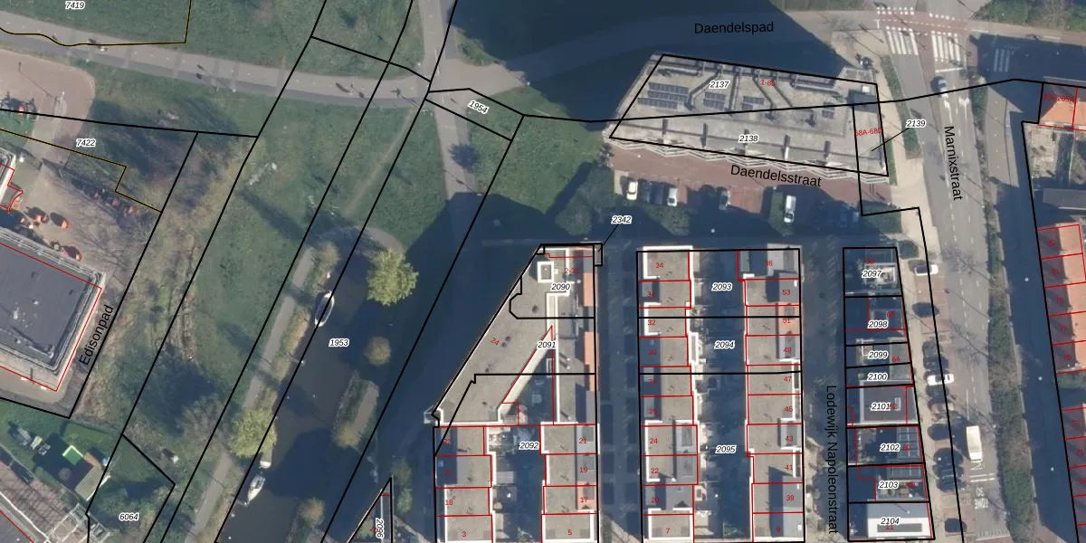 Daendelsstraat 12 is gelegen op kadastraal perceel LDN01N2090. Deze kadastrale aanduiding is uniek en wordt gebruikt door het Kadaster om eigendomsrechten en andere zakelijke rechten vast te leggen. Het perceel maakt onderdeel uit van de kadastrale gemeente Leiden.
