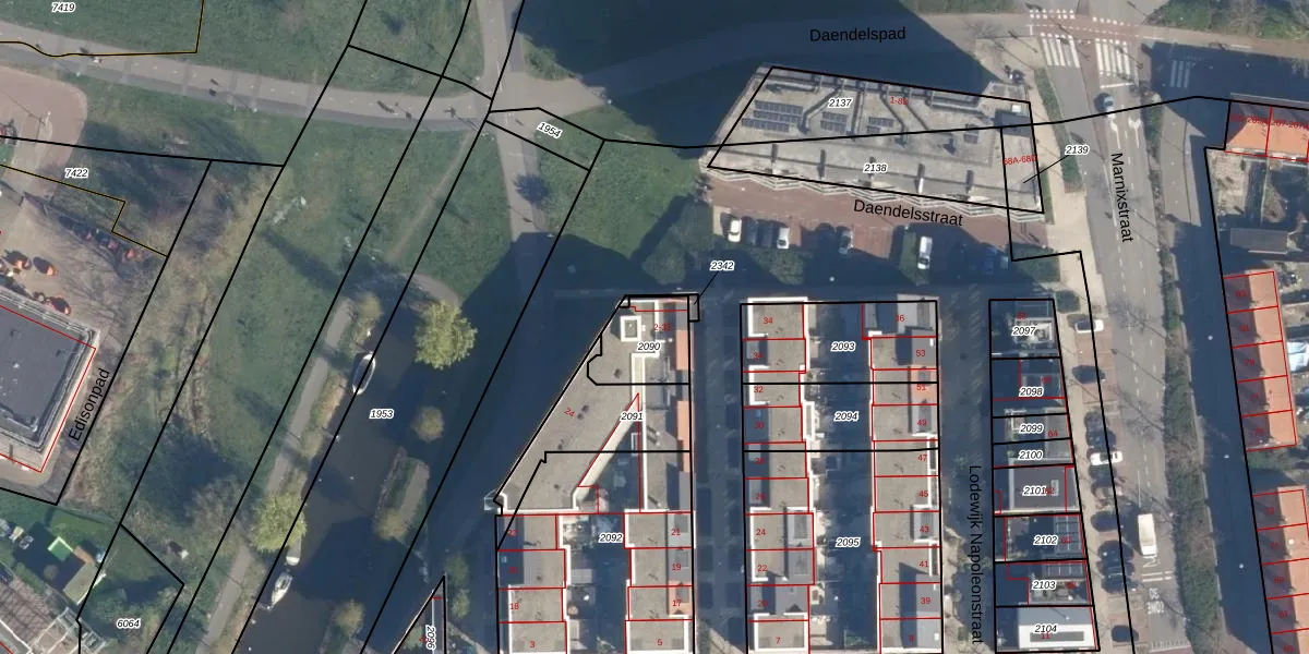 Daendelsstraat 8 is gelegen op kadastraal perceel LDN01N2090. Deze kadastrale aanduiding is uniek en wordt gebruikt door het Kadaster om eigendomsrechten en andere zakelijke rechten vast te leggen. Het perceel maakt onderdeel uit van de kadastrale gemeente Leiden.