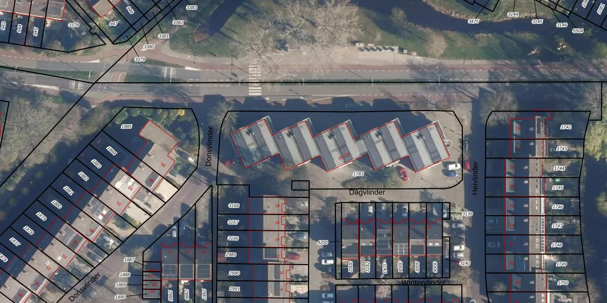 Het perceel waarop Dagvlinder 104 staat heeft een oppervlakte van 2050 m². Dit is een zeer groot perceel. De perceeloppervlakte wordt geregistreerd door het Kadaster. Gedetailleerde informatie over de maten van dit perceel kunt u vinden in het rapport Kadastrale kaart met maatvoering van Dagvlinder 104.