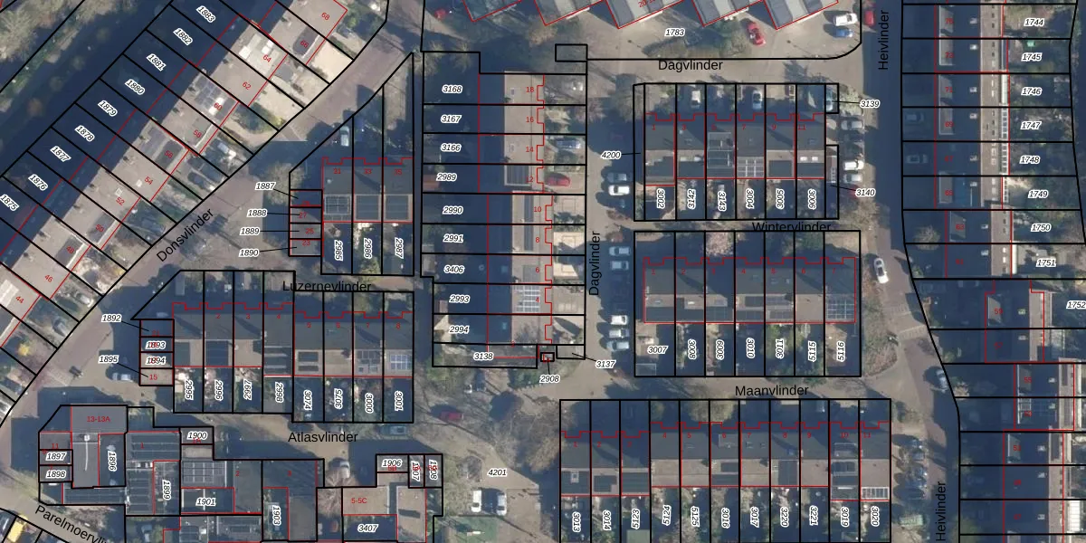 Gebruik de zoekbalk of klik op een perceel voor informatie over de adressen binnen dit perceel.