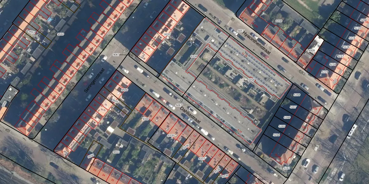 Het perceel waarop Dahliastraat 8 staat heeft een oppervlakte van 718 m². Dit is een groot perceel. De perceeloppervlakte wordt geregistreerd door het Kadaster. Gedetailleerde informatie over de maten van dit perceel kunt u vinden in het rapport Kadastrale kaart met maatvoering van Dahliastraat 8.