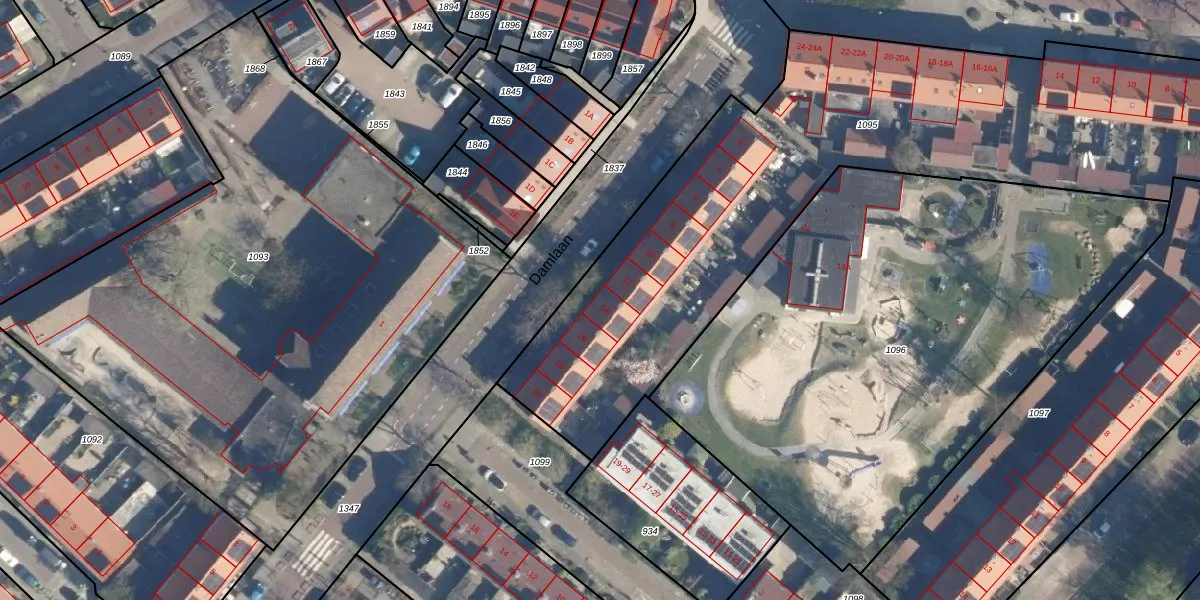 Het perceel waarop Damlaan 14 staat heeft een oppervlakte van 3190 m². Dit is een zeer groot perceel. De perceeloppervlakte wordt geregistreerd door het Kadaster. Gedetailleerde informatie over de maten van dit perceel kunt u vinden in het rapport Kadastrale kaart met maatvoering van Damlaan 14.
