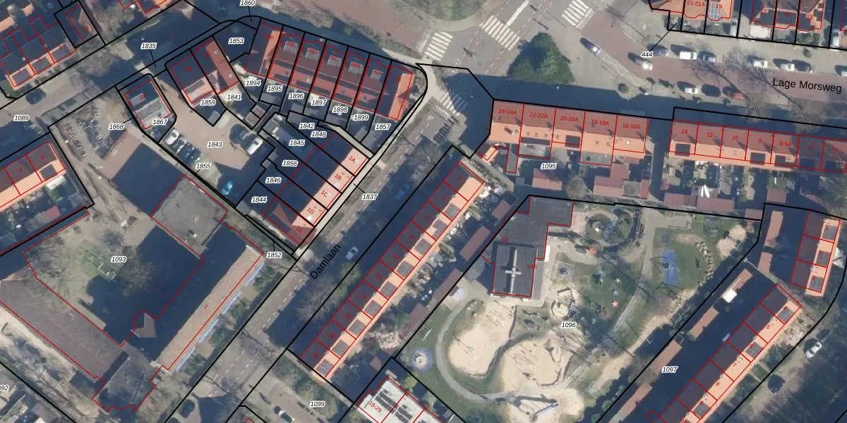 Damlaan 6 is gelegen op kadastraal perceel LDN01R1095. Deze kadastrale aanduiding is uniek en wordt gebruikt door het Kadaster om eigendomsrechten en andere zakelijke rechten vast te leggen. Het perceel maakt onderdeel uit van de kadastrale gemeente Leiden.