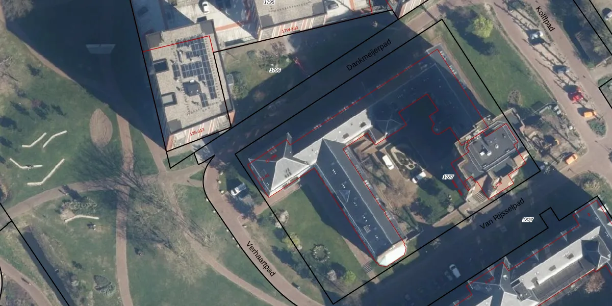 Het adres ligt op het perceel LDN01-R-1787, dat zich in de kadastrale gemeente Leiden bevindt. De oppervlakte van het perceel is 4740 m². Dat is groter dan gemiddeld in Leiden, waar de gemiddelde perceeloppervlakte op 703,94 m² ligt. Het grootste perceel in de kadastrale gemeente is 51,8 ha. Het kleinste perceel heeft een oppervlakte van 0 m². Op het perceel zijn 178 adressen aanwezig. De laatste wijziging in het de Basisregistratie Kadaster (BRK) was op 29-04-2019.