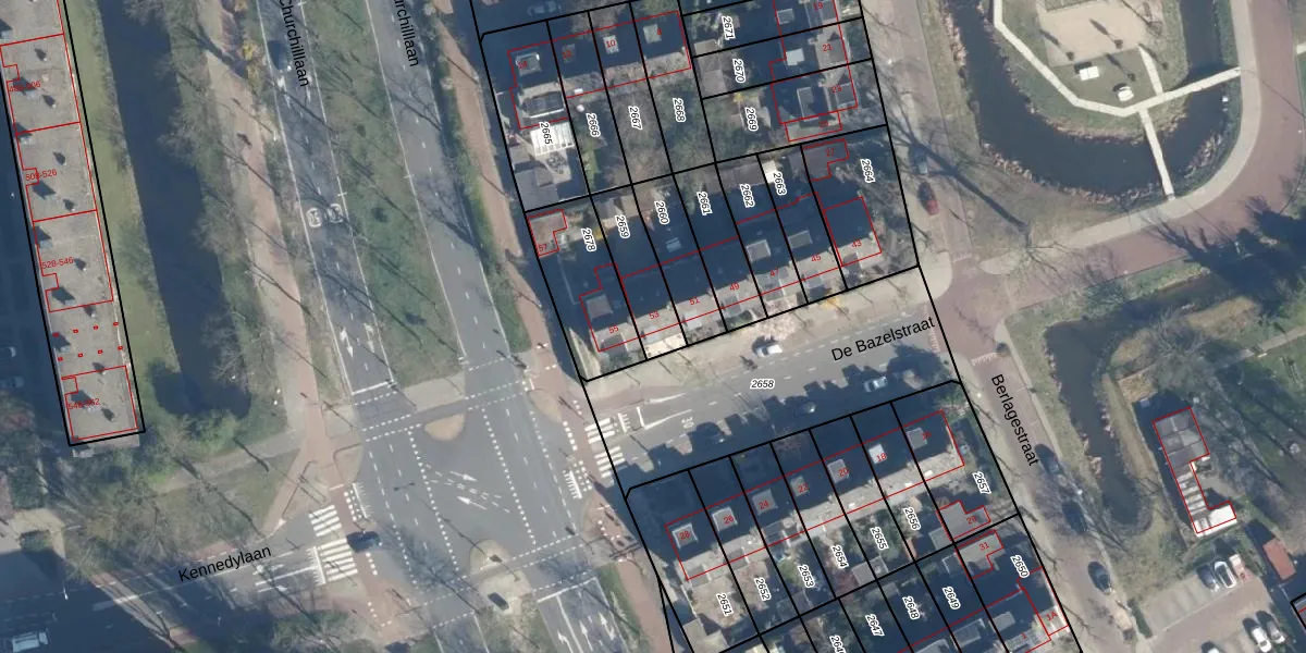 Gebruik de zoekbalk of klik op een perceel voor informatie over de adressen binnen dit perceel.