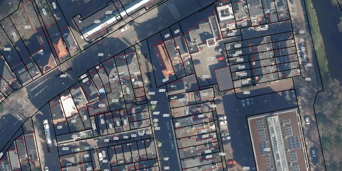 De Genestetstraat 2-A is gelegen op kadastraal perceel LDN01O1170. Deze kadastrale aanduiding is uniek en wordt gebruikt door het Kadaster om eigendomsrechten en andere zakelijke rechten vast te leggen. Het perceel maakt onderdeel uit van de kadastrale gemeente Leiden.