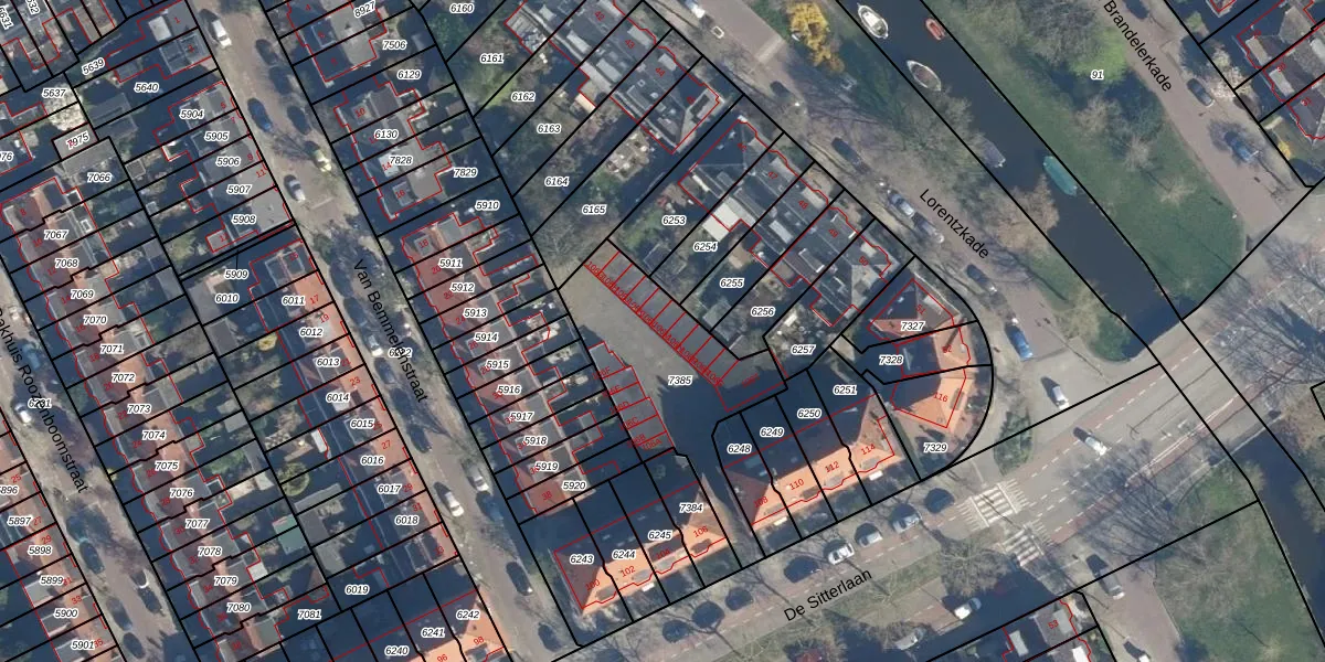 Het perceel waarop De Sitterlaan 106-M staat heeft een oppervlakte van 630 m². Dit is een groot perceel. De perceeloppervlakte wordt geregistreerd door het Kadaster. Gedetailleerde informatie over de maten van dit perceel kunt u vinden in het rapport Kadastrale kaart met maatvoering van De Sitterlaan 106-M.