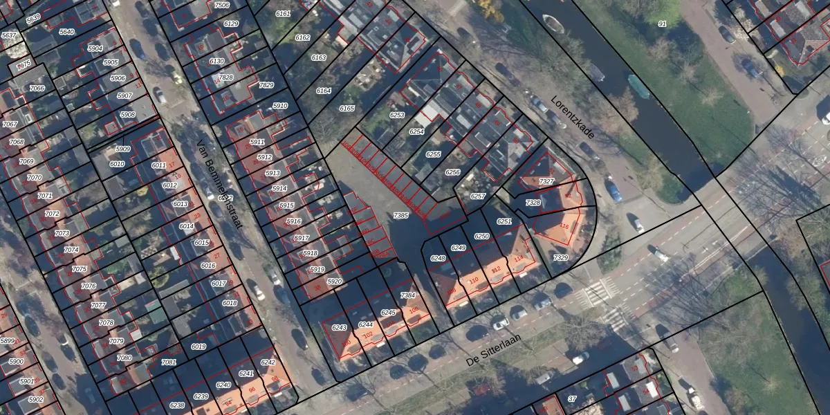 Het perceel waarop De Sitterlaan 106-R staat heeft een oppervlakte van 630 m². Dit is een groot perceel. De perceeloppervlakte wordt geregistreerd door het Kadaster. Gedetailleerde informatie over de maten van dit perceel kunt u vinden in het rapport Kadastrale kaart met maatvoering van De Sitterlaan 106-R.
