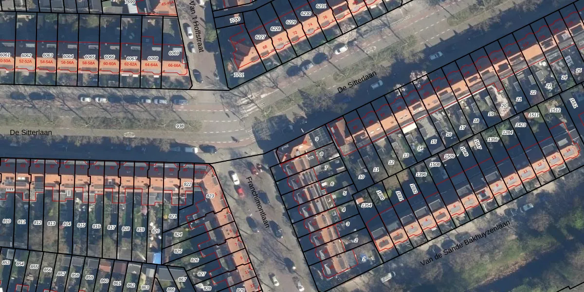 Het perceel waarop De Sitterlaan 89 staat heeft een oppervlakte van 119 m². Dit is een middelgroot perceel. De perceeloppervlakte wordt geregistreerd door het Kadaster. Gedetailleerde informatie over de maten van dit perceel kunt u vinden in het rapport Kadastrale kaart met maatvoering van De Sitterlaan 89.