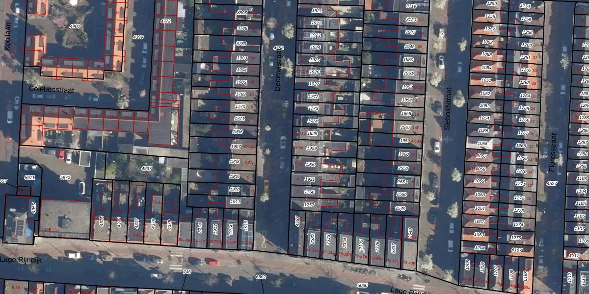 Decimastraat 9 is gelegen op kadastraal perceel LDN01K1929. Deze kadastrale aanduiding is uniek en wordt gebruikt door het Kadaster om eigendomsrechten en andere zakelijke rechten vast te leggen. Het perceel maakt onderdeel uit van de kadastrale gemeente Leiden.