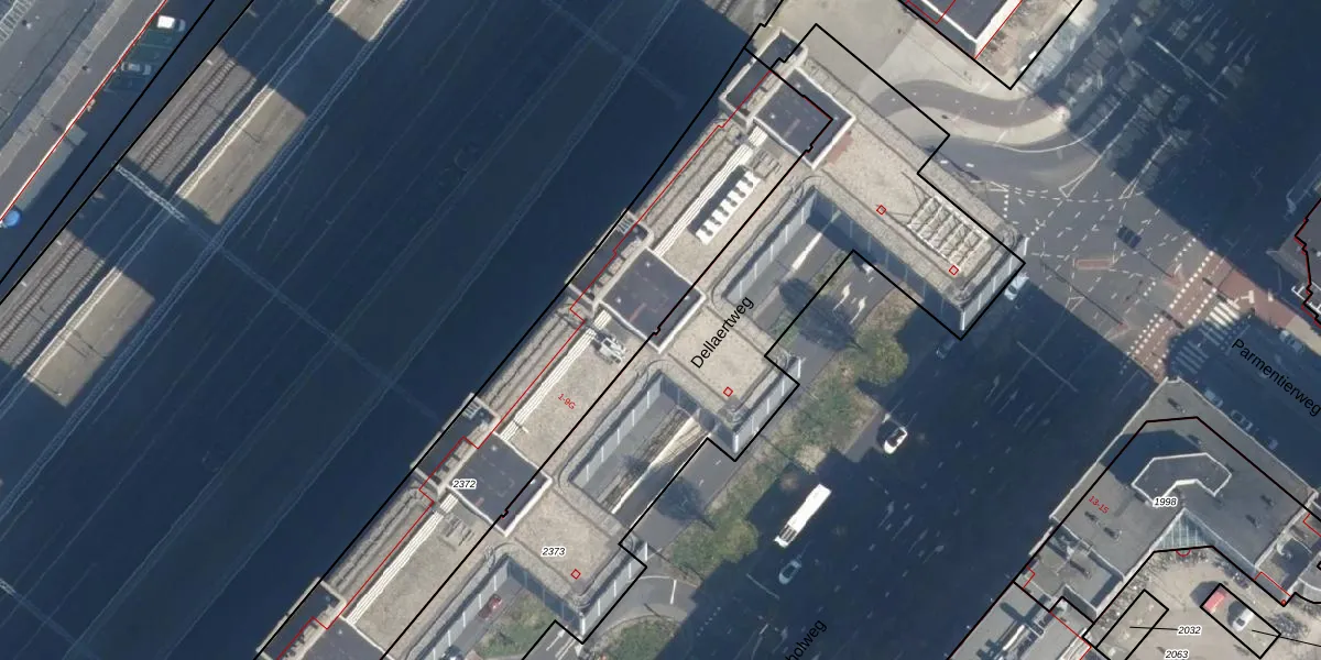 Het perceel waarop Dellaertweg 7-C staat heeft een oppervlakte van 3855 m². Dit is een zeer groot perceel. De perceeloppervlakte wordt geregistreerd door het Kadaster. Gedetailleerde informatie over de maten van dit perceel kunt u vinden in het rapport Kadastrale kaart met maatvoering van Dellaertweg 7-C.