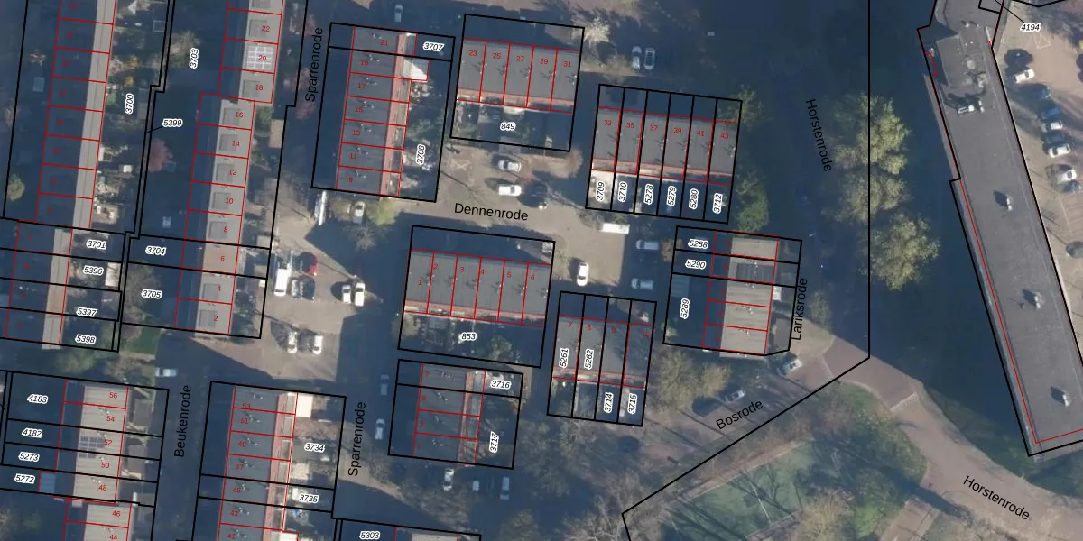 Dennenrode 6 is gelegen op kadastraal perceel LDN01S853. Deze kadastrale aanduiding is uniek en wordt gebruikt door het Kadaster om eigendomsrechten en andere zakelijke rechten vast te leggen. Het perceel maakt onderdeel uit van de kadastrale gemeente Leiden.