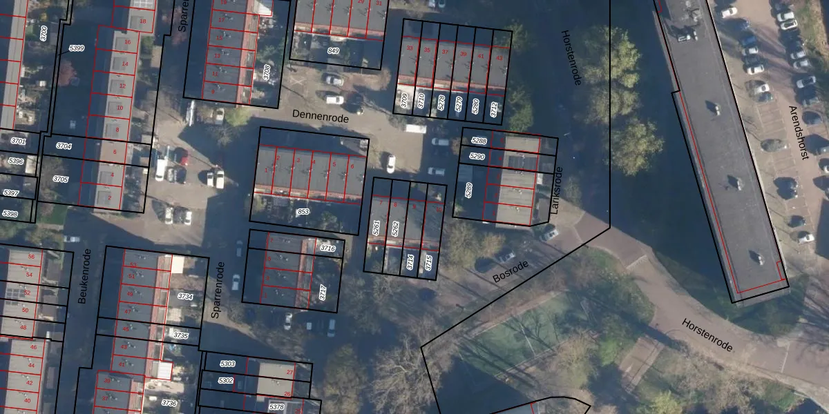 Het perceel waarop Dennenrode 9 staat heeft een oppervlakte van 100 m². Dit is een middelgroot perceel. De perceeloppervlakte wordt geregistreerd door het Kadaster. Gedetailleerde informatie over de maten van dit perceel kunt u vinden in het rapport Kadastrale kaart met maatvoering van Dennenrode 9.