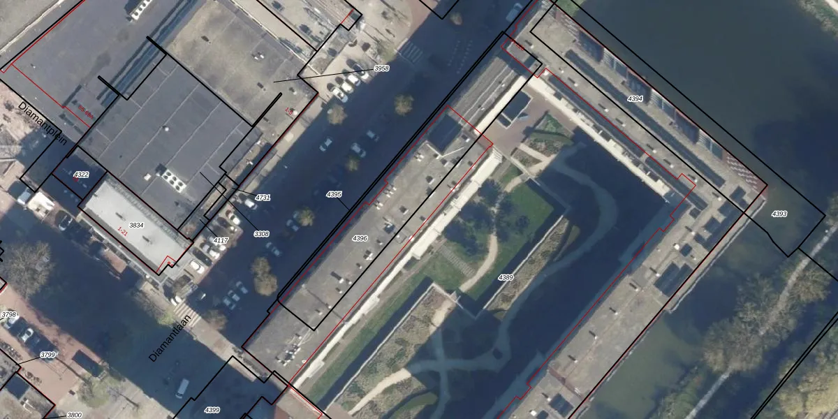 Het perceel waarop Diamantlaan 220-F staat heeft een oppervlakte van 6295 m². Dit is een zeer groot perceel. De perceeloppervlakte wordt geregistreerd door het Kadaster. Gedetailleerde informatie over de maten van dit perceel kunt u vinden in het rapport Kadastrale kaart met maatvoering van Diamantlaan 220-F.