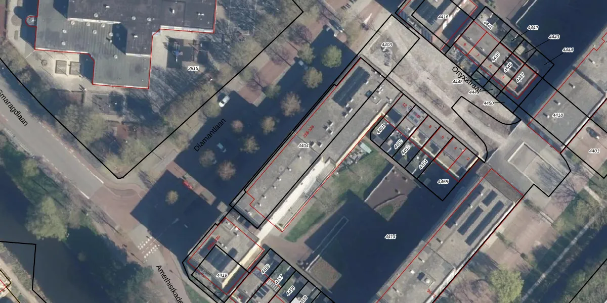 Het perceel waarop Diamantlaan 280-K staat heeft een oppervlakte van 734 m². Dit is een groot perceel. De perceeloppervlakte wordt geregistreerd door het Kadaster. Gedetailleerde informatie over de maten van dit perceel kunt u vinden in het rapport Kadastrale kaart met maatvoering van Diamantlaan 280-K.