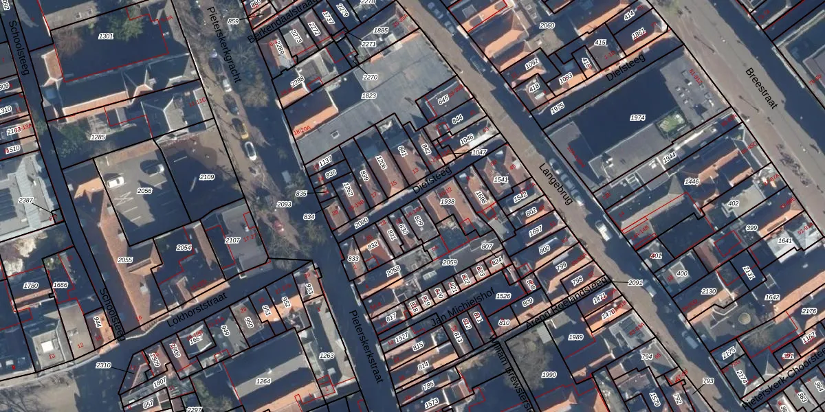 Het perceel waarop Diefsteeg 14 staat heeft een oppervlakte van 52 m². Dit is een klein perceel. De perceeloppervlakte wordt geregistreerd door het Kadaster. Gedetailleerde informatie over de maten van dit perceel kunt u vinden in het rapport Kadastrale kaart met maatvoering van Diefsteeg 14.