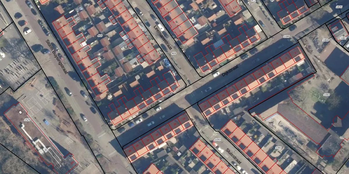 Dijkstraat 23 is gelegen op kadastraal perceel LDN01R468. Deze kadastrale aanduiding is uniek en wordt gebruikt door het Kadaster om eigendomsrechten en andere zakelijke rechten vast te leggen. Het perceel maakt onderdeel uit van de kadastrale gemeente Leiden.
