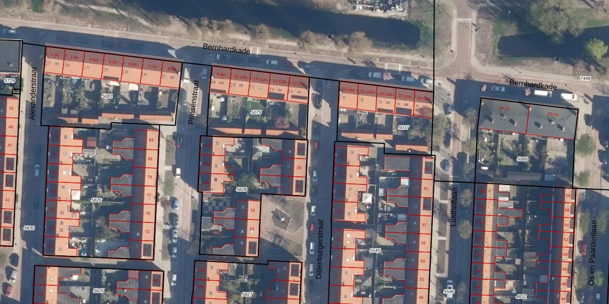 Het perceel waarop Dillenburgerstraat 22 staat heeft een oppervlakte van 1045 m². Dit is een zeer groot perceel. De perceeloppervlakte wordt geregistreerd door het Kadaster. Gedetailleerde informatie over de maten van dit perceel kunt u vinden in het rapport Kadastrale kaart met maatvoering van Dillenburgerstraat 22.