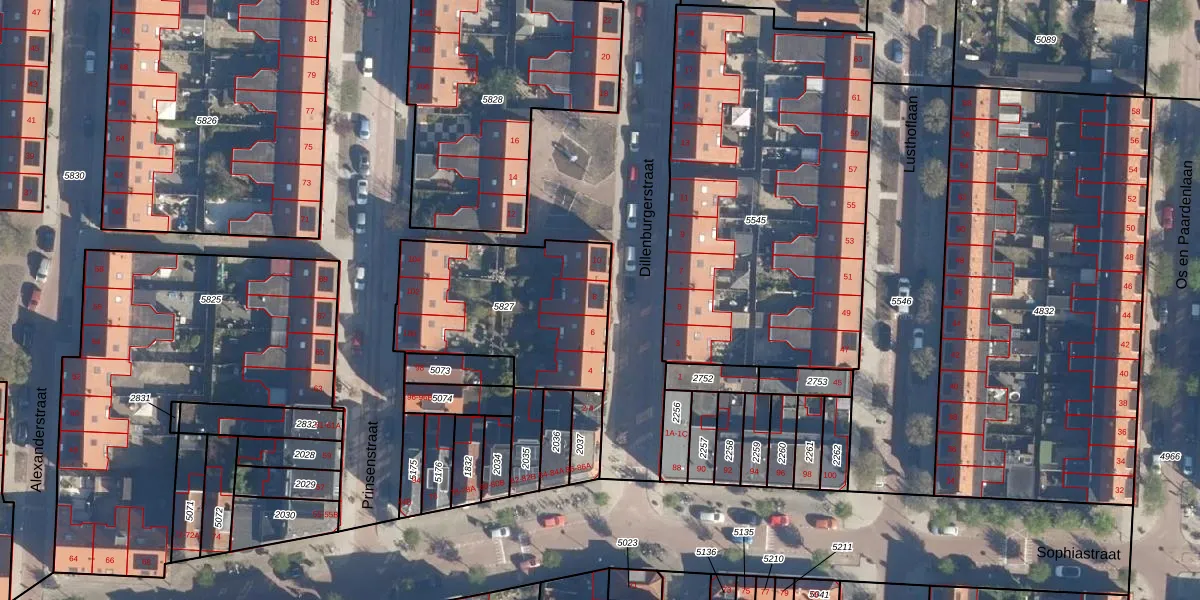 Dillenburgerstraat 8 is gelegen op kadastraal perceel LDN01K5827. Deze kadastrale aanduiding is uniek en wordt gebruikt door het Kadaster om eigendomsrechten en andere zakelijke rechten vast te leggen. Het perceel maakt onderdeel uit van de kadastrale gemeente Leiden.