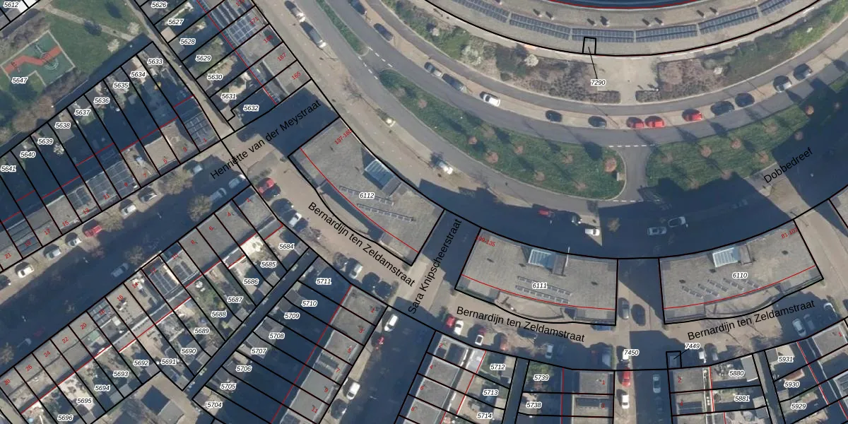 Dobbedreef 141 is gelegen op kadastraal perceel LDN01W6112. Deze kadastrale aanduiding is uniek en wordt gebruikt door het Kadaster om eigendomsrechten en andere zakelijke rechten vast te leggen. Het perceel maakt onderdeel uit van de kadastrale gemeente Leiden.