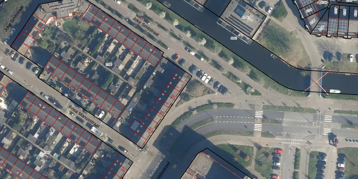 Het adres ligt op het perceel LDN01-W-7286, dat zich in de kadastrale gemeente Leiden bevindt. De oppervlakte van het perceel is 4450 m². Dat is groter dan gemiddeld in Leiden, waar de gemiddelde perceeloppervlakte op 703,99 m² ligt. Het grootste perceel in de kadastrale gemeente is 51,8 ha. Het kleinste perceel heeft een oppervlakte van 0 m². Er zijn 42 adressen aanwezig op het perceel. De laatste wijziging in het de Basisregistratie Kadaster (BRK) was op 29-08-2003.