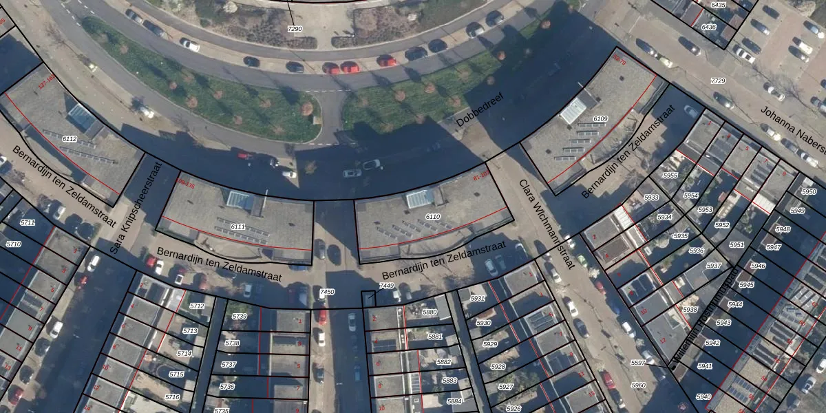 Dobbedreef 97 is gelegen op kadastraal perceel LDN01W6110. Deze kadastrale aanduiding is uniek en wordt gebruikt door het Kadaster om eigendomsrechten en andere zakelijke rechten vast te leggen. Het perceel maakt onderdeel uit van de kadastrale gemeente Leiden.