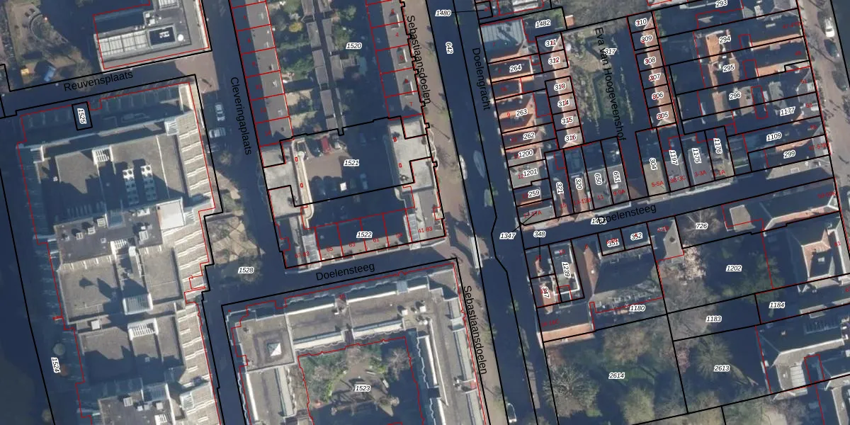 Het perceel waarop Doelensteeg 45 staat heeft een oppervlakte van 595 m². Dit is een groot perceel. De perceeloppervlakte wordt geregistreerd door het Kadaster. Gedetailleerde informatie over de maten van dit perceel kunt u vinden in het rapport Kadastrale kaart met maatvoering van Doelensteeg 45.