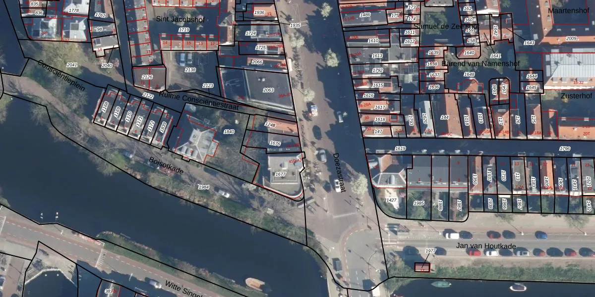 Het adres ligt op het perceel LDN01-E-1676, dat zich in de kadastrale gemeente Leiden bevindt. De gemiddelde perceelgrootte in Leiden is 703,94 m². Dit perceel is kleiner: de perceeloppervlakte bedraagt 125 m². De grootste perceeloppervlakte in de kadastrale gemeente is 51,8 ha. De kleinste oppervlakte bedraagt 0 m². Op het perceel liggen in totaal 3 adressen. De huidige grenzen van het perceel zijn digitaal in de Basisregistratie Kadaster (BRK) geregistreerd op 12-06-2017.