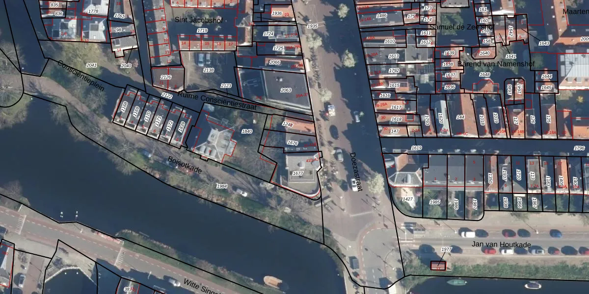 Doezastraat 41-B is gelegen op kadastraal perceel LDN01E1676. Deze kadastrale aanduiding is uniek en wordt gebruikt door het Kadaster om eigendomsrechten en andere zakelijke rechten vast te leggen. Het perceel maakt onderdeel uit van de kadastrale gemeente Leiden.