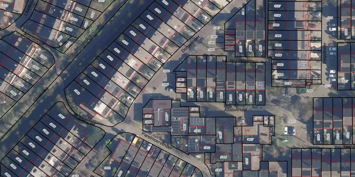 Het perceel waarop Donsvlinder 15 staat heeft een oppervlakte van 20 m². Dit is een klein perceel. De perceeloppervlakte wordt geregistreerd door het Kadaster. Gedetailleerde informatie over de maten van dit perceel kunt u vinden in het rapport Kadastrale kaart met maatvoering van Donsvlinder 15.
