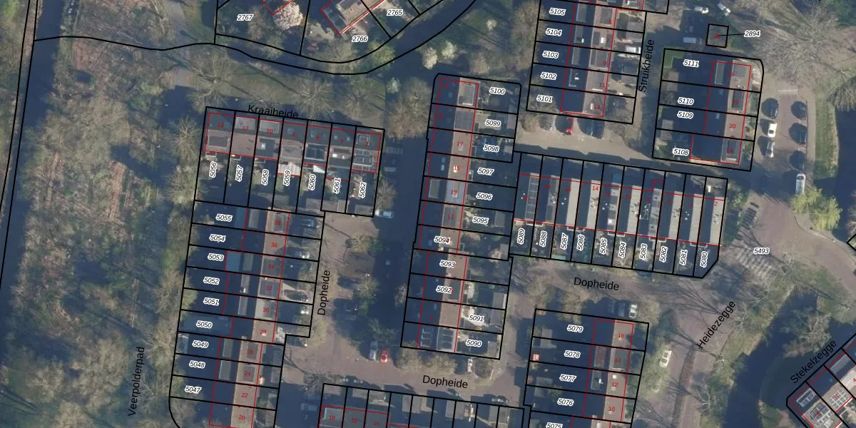 Gebruik de zoekbalk of klik op een perceel voor informatie over de adressen binnen dit perceel.
