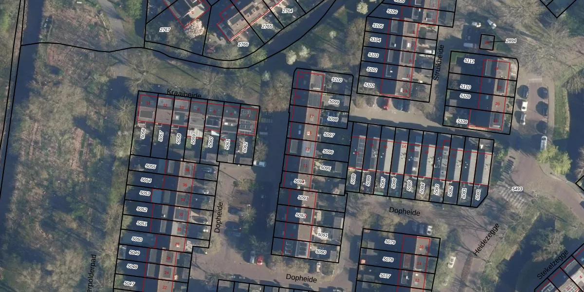 Gebruik de zoekbalk of klik op een perceel voor informatie over de adressen binnen dit perceel.