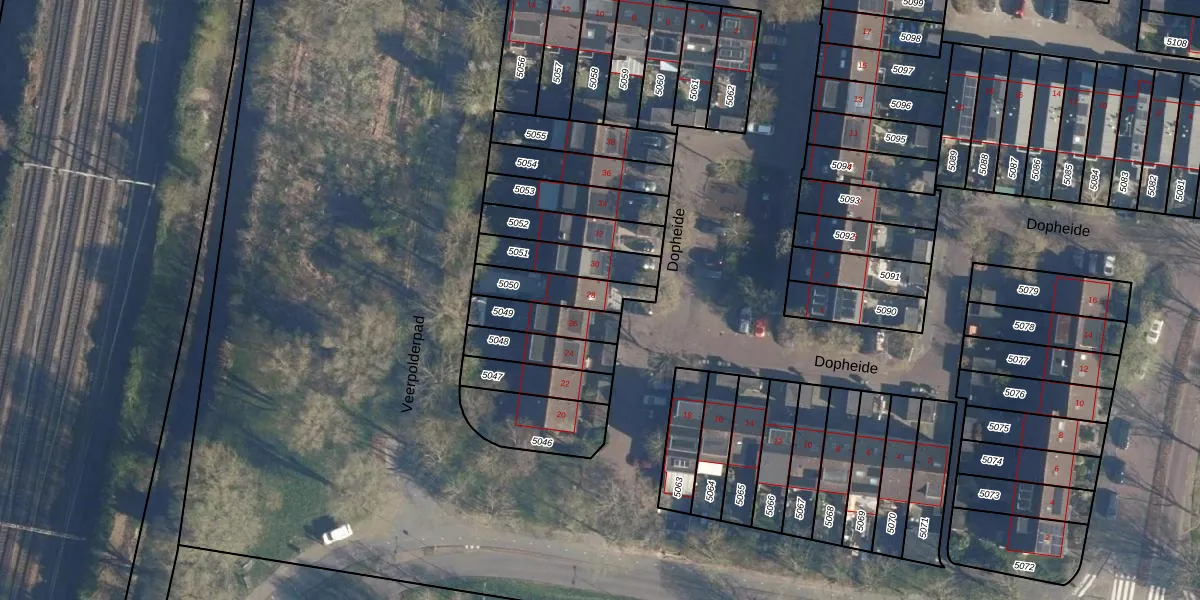 Dopheide 28 is gelegen op kadastraal perceel LDN01S5050. Deze kadastrale aanduiding is uniek en wordt gebruikt door het Kadaster om eigendomsrechten en andere zakelijke rechten vast te leggen. Het perceel maakt onderdeel uit van de kadastrale gemeente Leiden.