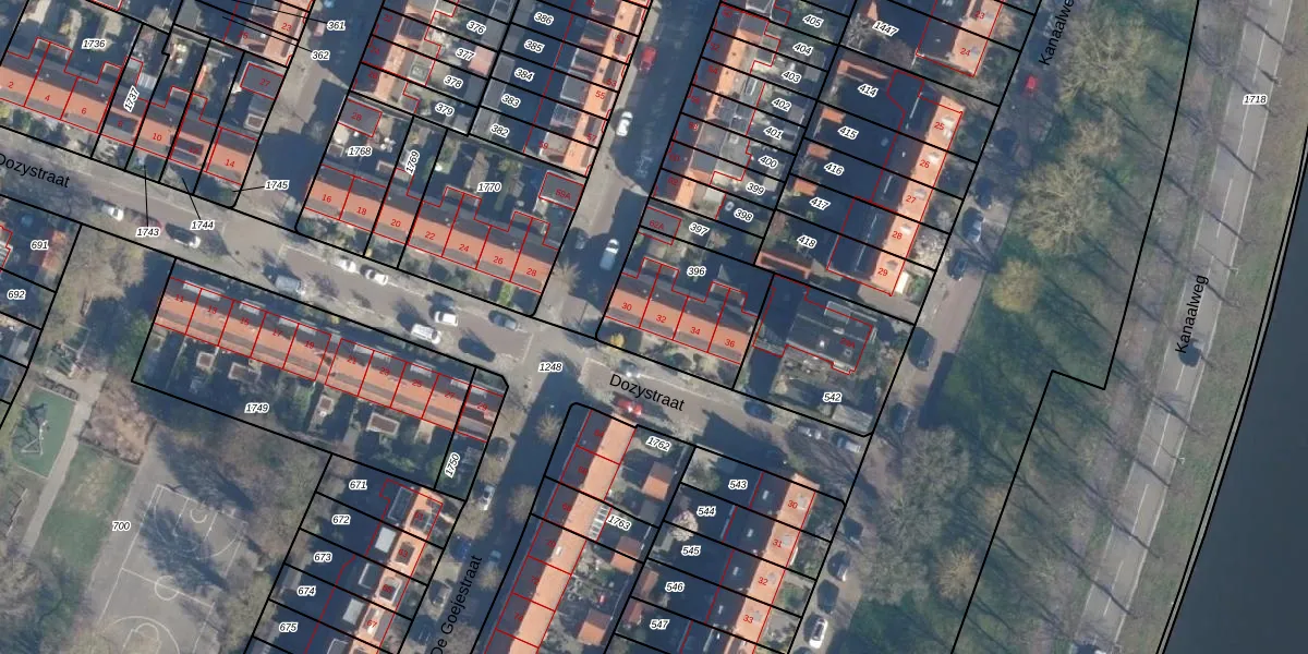 Het perceel waarop Dozystraat 32 staat heeft een oppervlakte van 419 m². Dit is een groot perceel. De perceeloppervlakte wordt geregistreerd door het Kadaster. Gedetailleerde informatie over de maten van dit perceel kunt u vinden in het rapport Kadastrale kaart met maatvoering van Dozystraat 32.