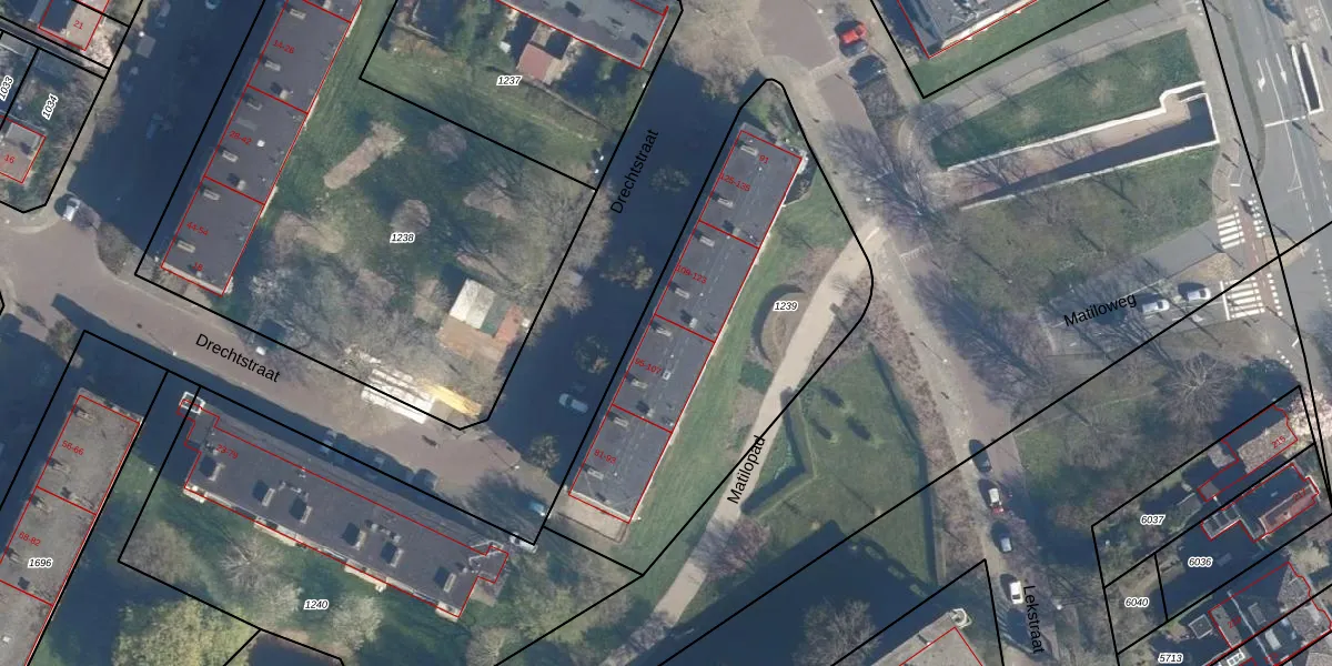 Drechtstraat 101 is gelegen op kadastraal perceel LDN01Q1239. Deze kadastrale aanduiding is uniek en wordt gebruikt door het Kadaster om eigendomsrechten en andere zakelijke rechten vast te leggen. Het perceel maakt onderdeel uit van de kadastrale gemeente Leiden.