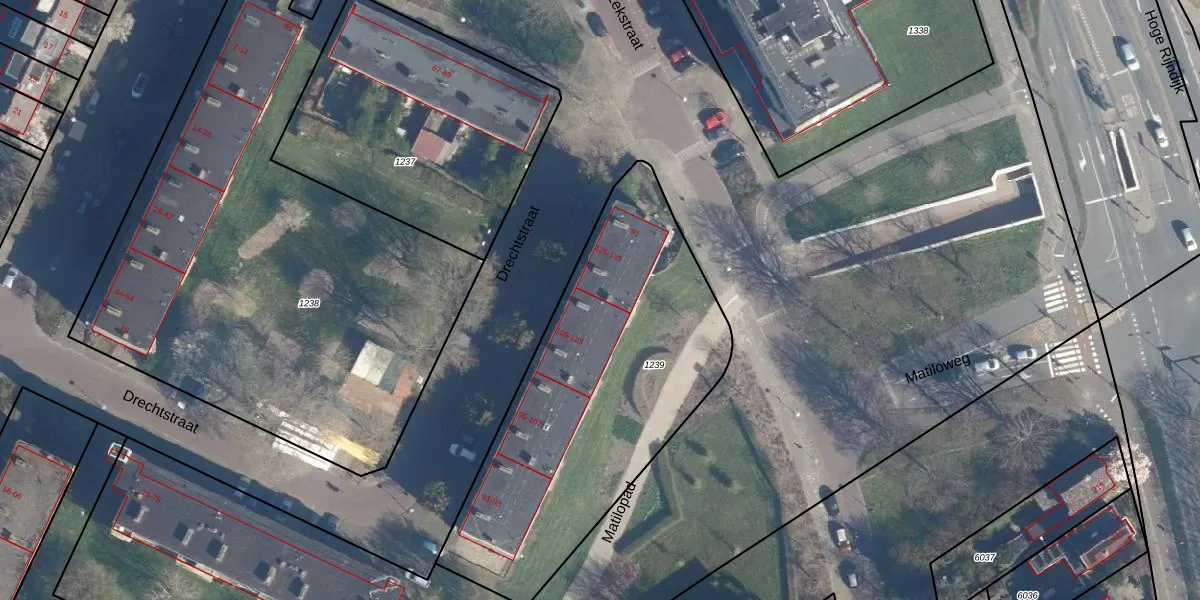 Het perceel waarop Drechtstraat 123 staat heeft een oppervlakte van 1665 m². Dit is een zeer groot perceel. De perceeloppervlakte wordt geregistreerd door het Kadaster. Gedetailleerde informatie over de maten van dit perceel kunt u vinden in het rapport Kadastrale kaart met maatvoering van Drechtstraat 123.