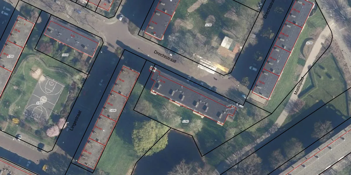 Het perceel waarop Drechtstraat 35 staat heeft een oppervlakte van 1880 m². Dit is een zeer groot perceel. De perceeloppervlakte wordt geregistreerd door het Kadaster. Gedetailleerde informatie over de maten van dit perceel kunt u vinden in het rapport Kadastrale kaart met maatvoering van Drechtstraat 35.